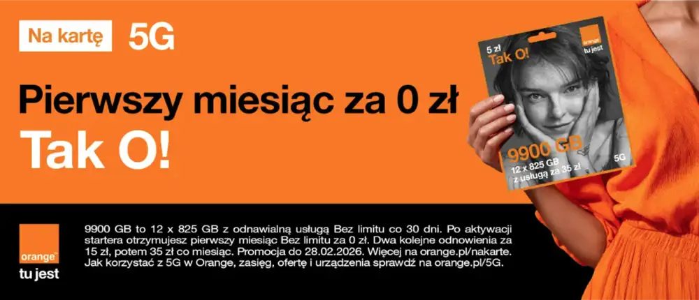 W dniach 29.01-28.02.2026 doładuj online w Orange na kartę.